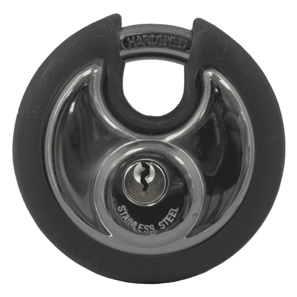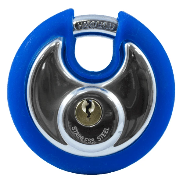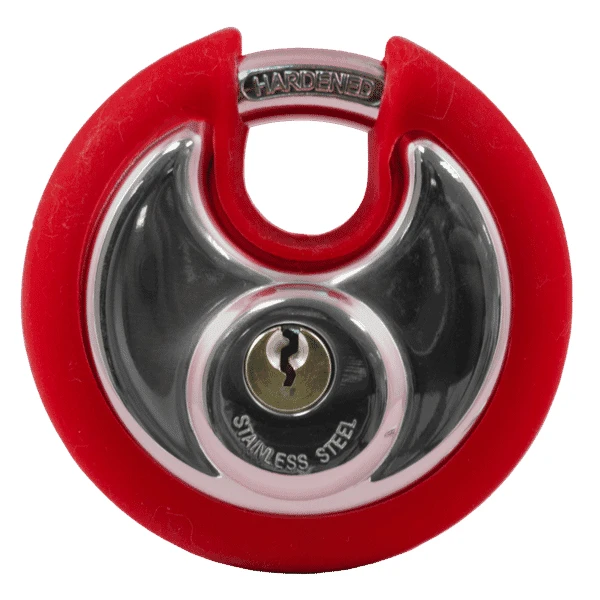 New from Asec Security, a range of round discus padlocks with coloured bumper to the edge for quick and easy lock identification. These padlocks also include the normal security features that are associated with discus padlocks, concealed shackle, dead bolt locking that restricts prying and key withdrawal in the locked position only.