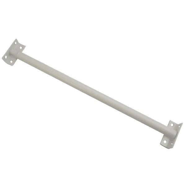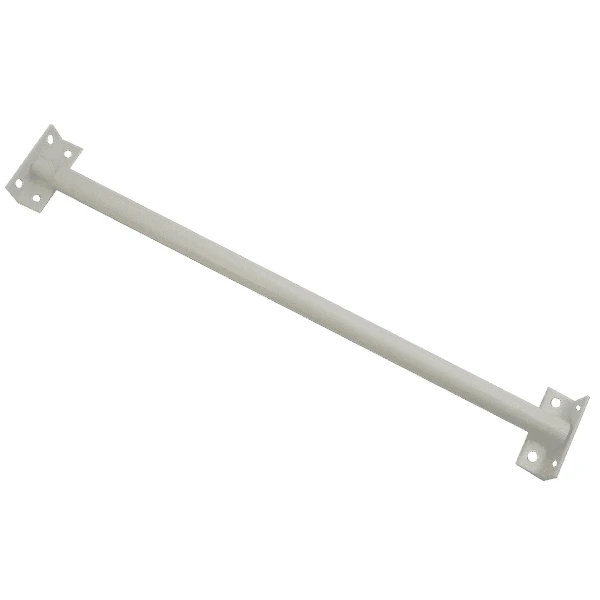 Security bars for windows. White round extending security bar from Asec with right angle fitting brackets for easy fixing. Constructed of 2 parts, 14.5mm inner solid bar and 19mm outer bar, allowing security bars to extend to required length. These high security window bars are ideal for commercial properties.