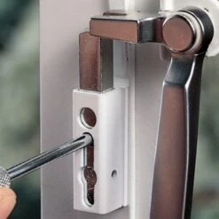 Suitable for metal casements and fanlights windows. This metal window lock has been designed with the concept of maximum security. The locking application is by means of a €œU€ cam locking on to a hardened steel pin. Works independently from the handle