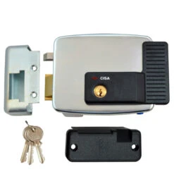 Electric Rim lock can be fitted to inward or outward opening doors, operation by Access Control System or key from either side. For use on external metal doors or gates. CISA electric lock series is certified according to the European standard prEN 14846:06:- Security degree 3 (500 Kg lateral thrust and 200 Kg front load). Comes supplied with 3 keys made by CISA.