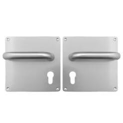 Dortrend Door Furniture Handle on Large Plate 20mm round return to door handle, 10g aluminium backplate
