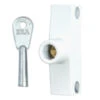 Operation: Lock body slides between window handle forks, then the key is used to tighten the steel locking pin against the window frame, thus preventing movement of the handle.