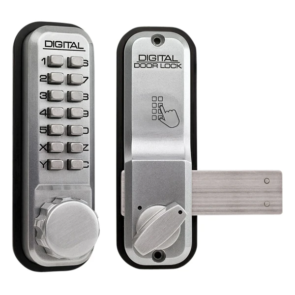 Lockey digital door lock 2200 with surface mounted sliding locking bar that is operated from turn knob inside or thumb turn from outside. Unlink other more traditional digital door lock the 2200 use a locking bar instead of latch bolt, this allows the lock to be used with narrow stile doors or places a mortice latch can not be fitted. As the Lockey 2200 uses a locking bolt the door lock will not automatically lock its self.