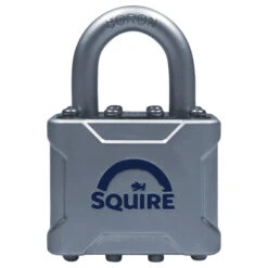 Squire Vulcan P4 Padlocks with a strong Boron open shackle. These Squire Vulcan padlocks come in three sizes, 44mm, 48mm and 55mm and each padlock is supplied with 2 keys. The Squire P4 offers great strengths and also looks with an attractive satin chrome body cover stamped with the Squire logo.